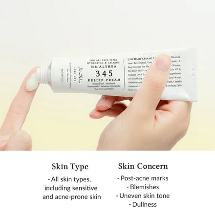 Clínicamente probada como no comedogénica, la crema 345 Relief (Ver.2) es segura y suave para pieles propensas al acné, lo que la hace ideal para el uso diario en su rutina de cuidado del acné.