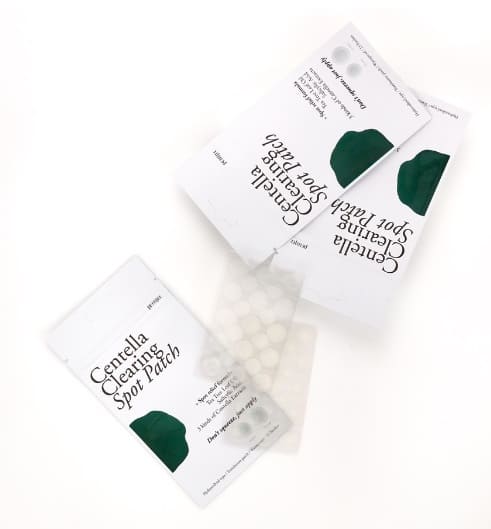 Parche de Centella aclarador para manchas: Calma y protege los puntos problemáticos. Contiene aceite de hoja de árbol de té y extractos de centella.